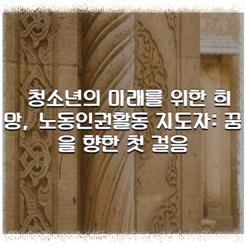 ◆ 노동인권활동 지도자는 청소년들의 미래를 위한 희망을 담은 중요한 역할을 수행합니다. 만약 청소년들의 삶을 변화시키고 싶고, 사회 변화에 앞장서고 싶다면, 노동인권활동 지도자 자격증을 취득하여 꿈을 향한 첫 걸음을 내딛는 것은 어떨까요?