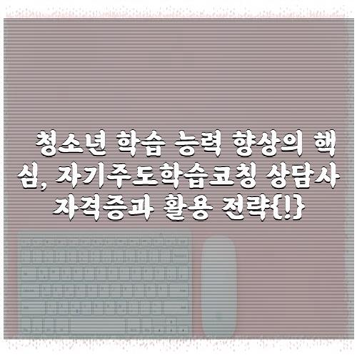 청소년 학습 능력 향상의 핵심, 자기주도학습코칭 상담사 자격증과 활용 전략! 관련내용 확인 해 보시겠습니다.