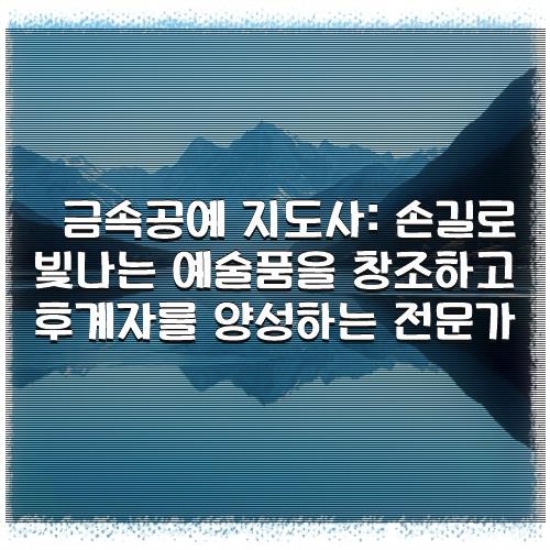 금속공예 지도사: 손길로 빛나는 예술품을 창조하고 후계자를 양성하는 전문가 관련내용 확인 해 보시겠습니다.