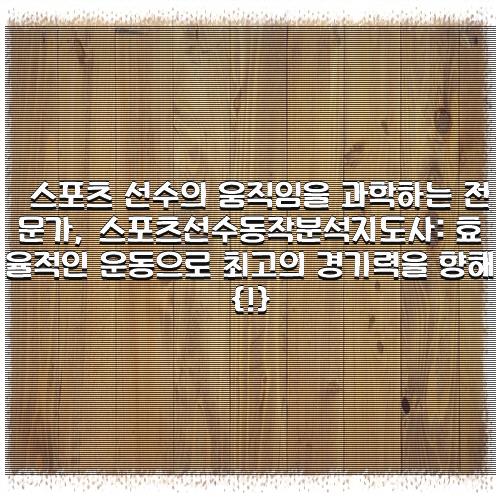 스포츠 선수의 움직임을 과학하는 전문가, 스포츠선수동작분석지도사: 효율적인 운동으로 최고의 경기력을 향해