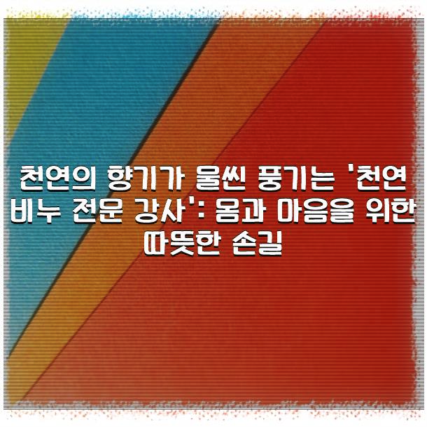 포스팅 해드린 내용은 천연의 향기가 물씬 풍기는 '천연 비누 전문 강사': 몸과 마음을 위한 따뜻한 손길 입니다. 부디 좋은 정보가 되셨길 바랍니다.
