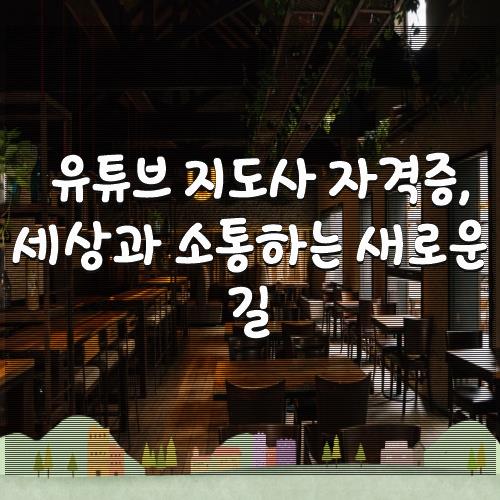 유튜브 지도사 자격증, 세상과 소통하는 새로운 길 관련 정리 입니다. 위 자격증정보가 필요하신분들께 도움이 되셨길 바랍니다.