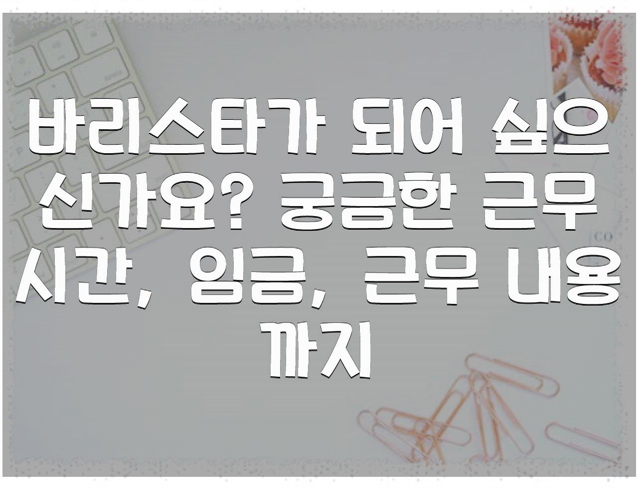 정리해드린 정보는 바리스타가 되어 싶으신가요? 궁금한 근무 시간, 임금, 근무 내용까지 관련 정리 입니다. 부디 좋은 내용이 되셨길...