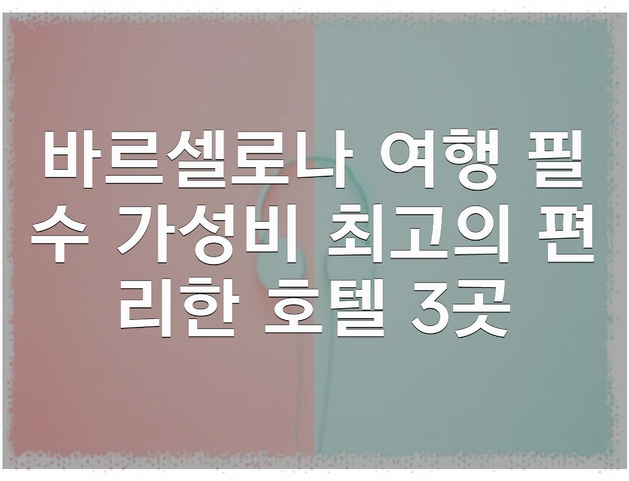 바르셀로나 여행을 다녀왔는데요, 꼼꼼하게 조사하여 가성비 최고의 편리한 호텔 3곳을 선정했습니다. 제가 직접 체험한 내용을 바탕으로, 각 호텔의 장점과 특징을 자세히 소개합니다.